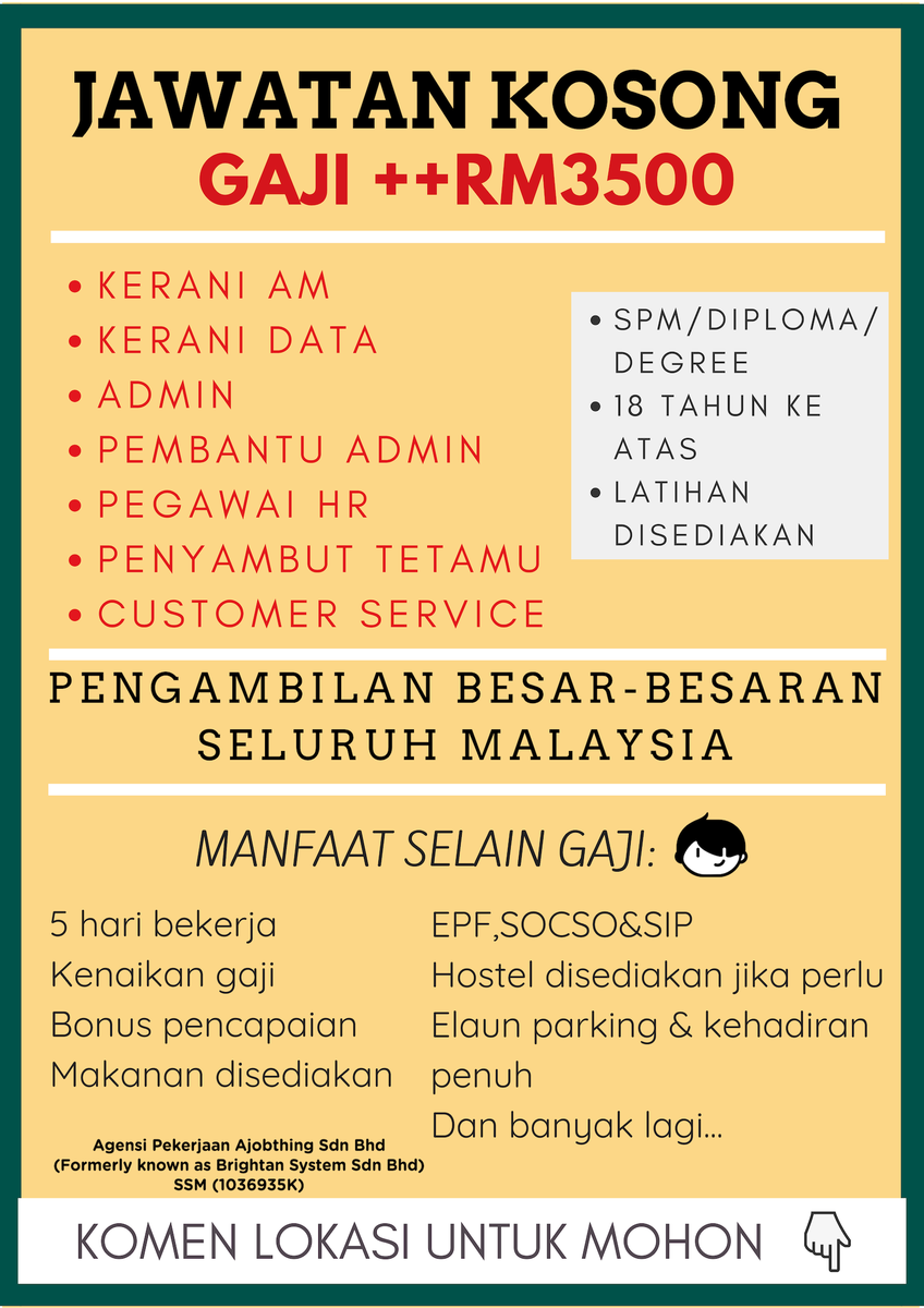 Maukerja On Twitter Kekosongan Kerja Swasta Di Seluruh Malaysia Ambilan Segera Lebih 1500 Kekosongan Untuk Diisii Ambilan Disember 2018 Dan Januari 2019 Gaji Sehingga Rm3500 Spm Diploma Degree Boleh Mohon Tahu Basic Ms Word